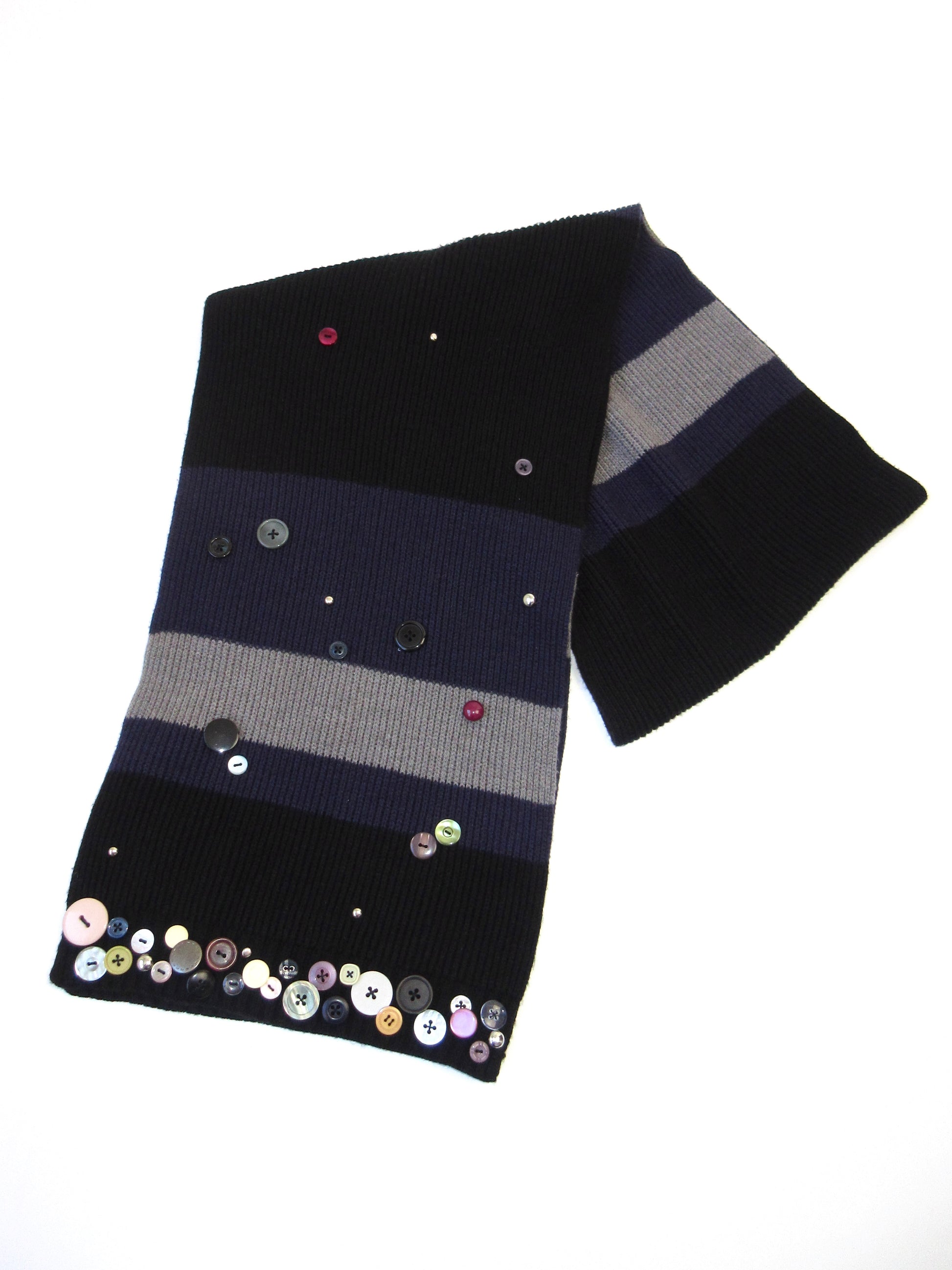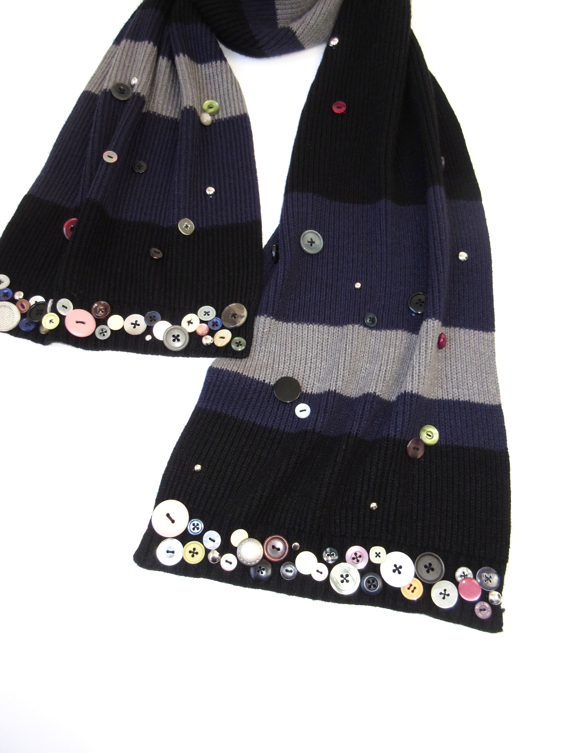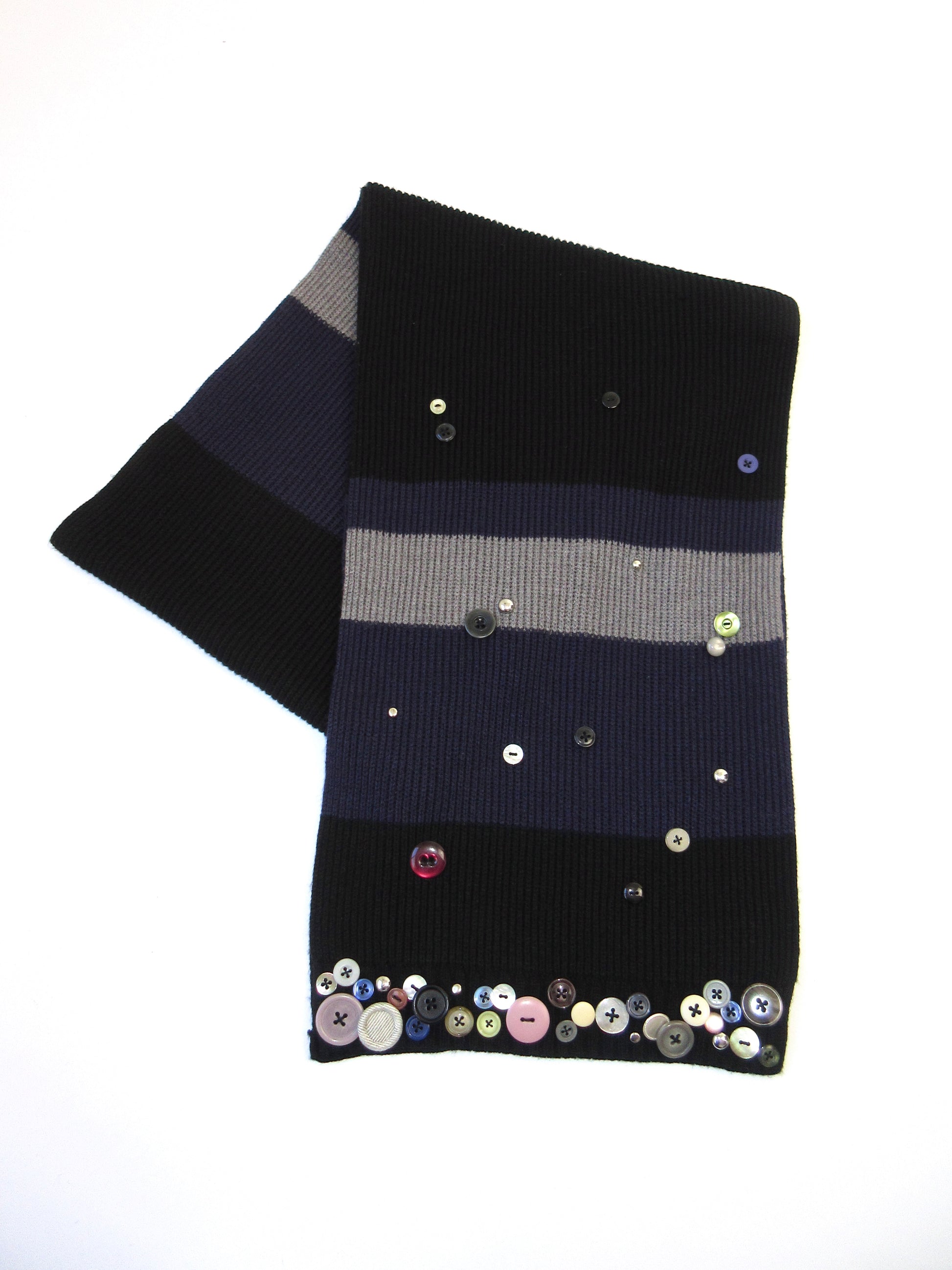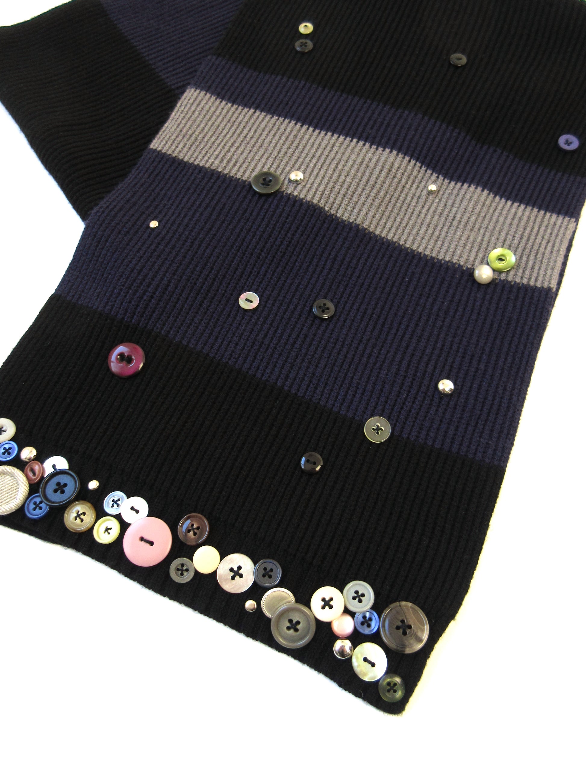 たくさんのボタンをあしらい存在感ある特別なマフラーに。落ち着いたカラーでまとめたのでデイリー使いもしやすいかなと思います♩rokka mufflerを巻いて素敵な冬をお過ごしください ❄︎.•♥ 着用写真は、マフラーを半分折りして巻いています。