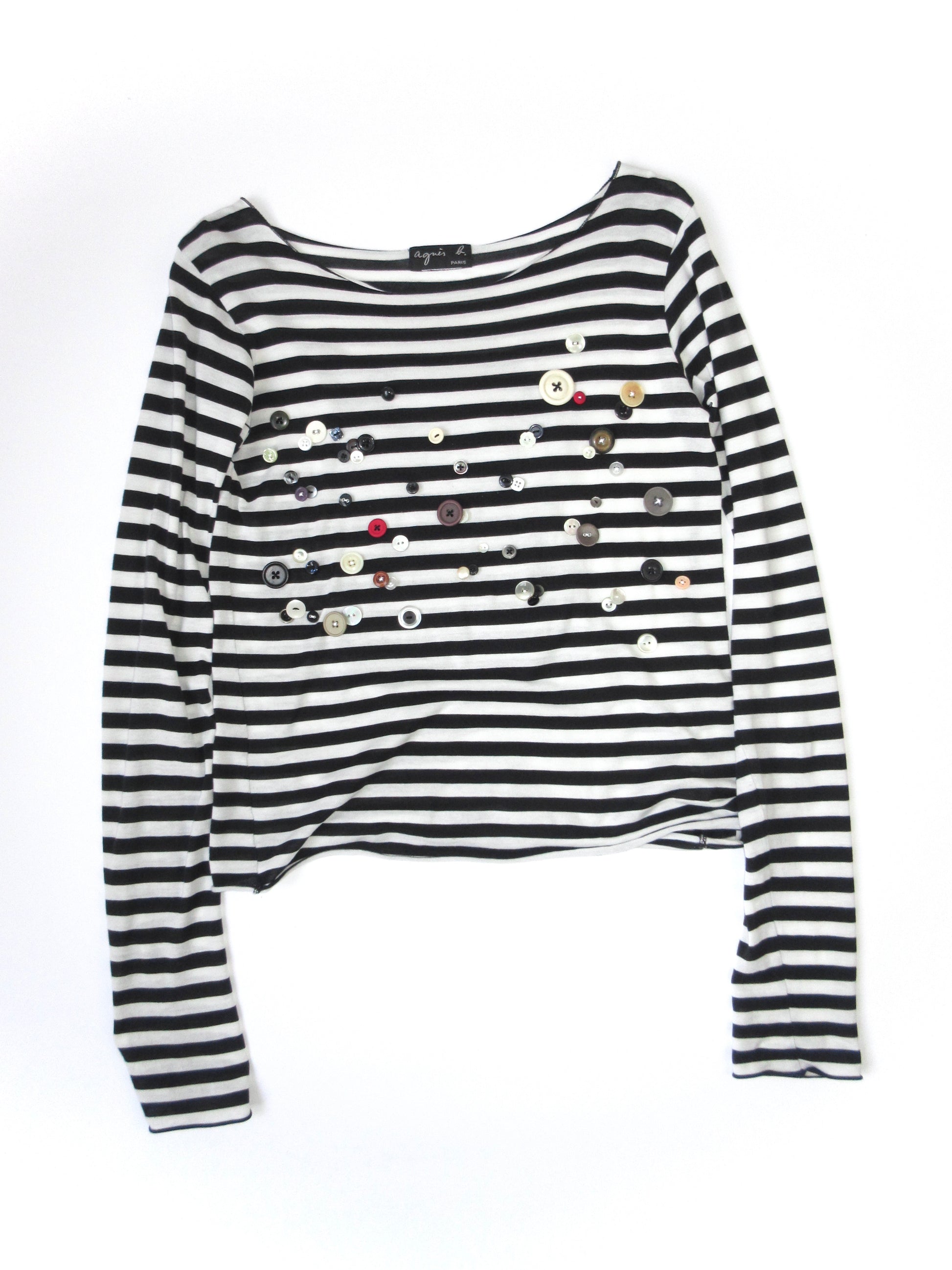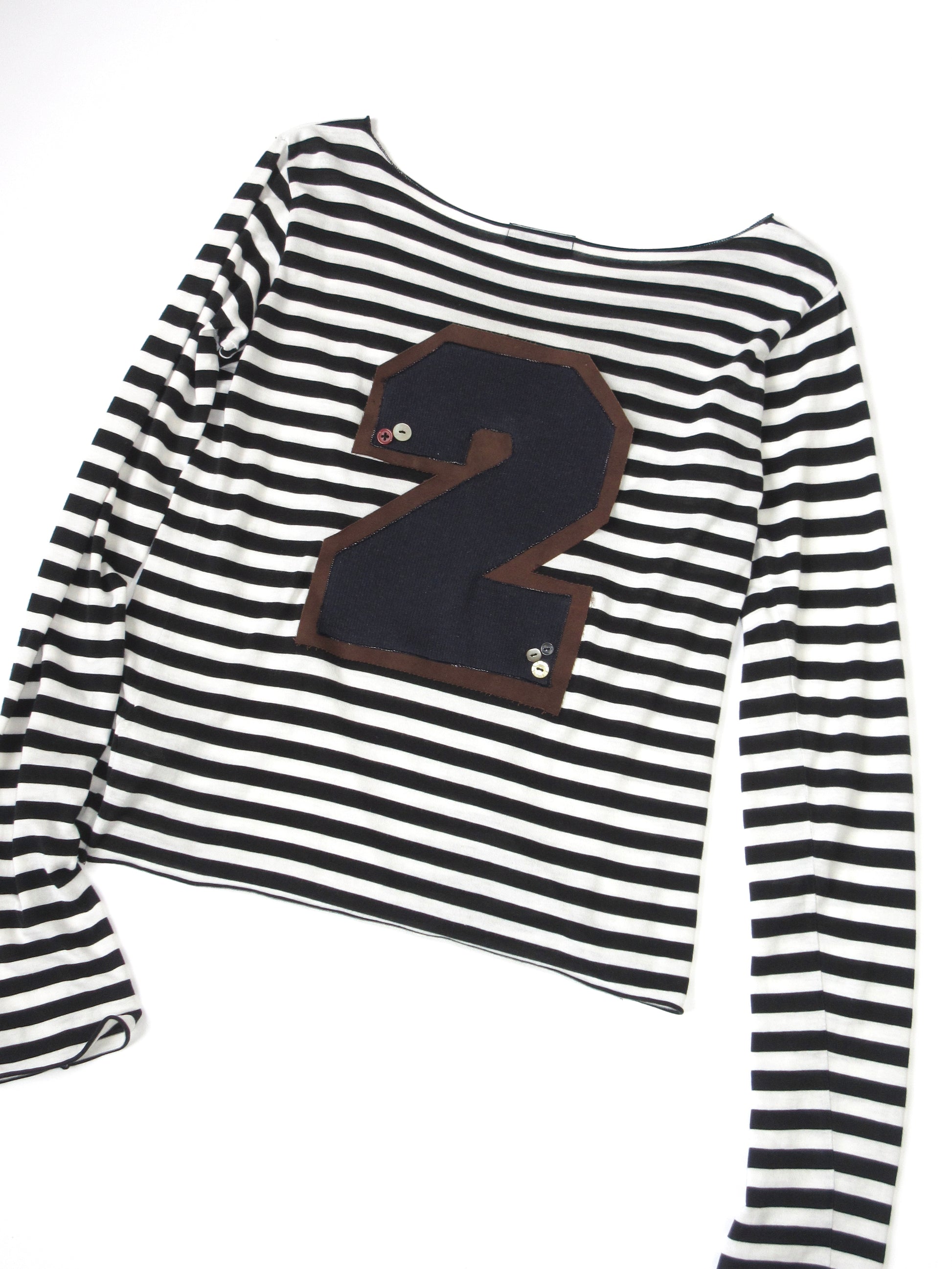 今回のupdateの中では最もカジュアルな雰囲気の1着。レッドやオレンジなどのカラーボタンを取り入れ、暗くなりがちなFWの装いのアクセントになってくれそう。フロント裾に小さなシミがあり、若干の毛羽立ちがありますがその他気になるダメージは無く比較的良好なコンディションです。バックの「2」は切りっぱなしにしている為、洗濯で多少ほつれが生じます。これもデザインの一部で風合いの為ご理解の上ご購入ください。