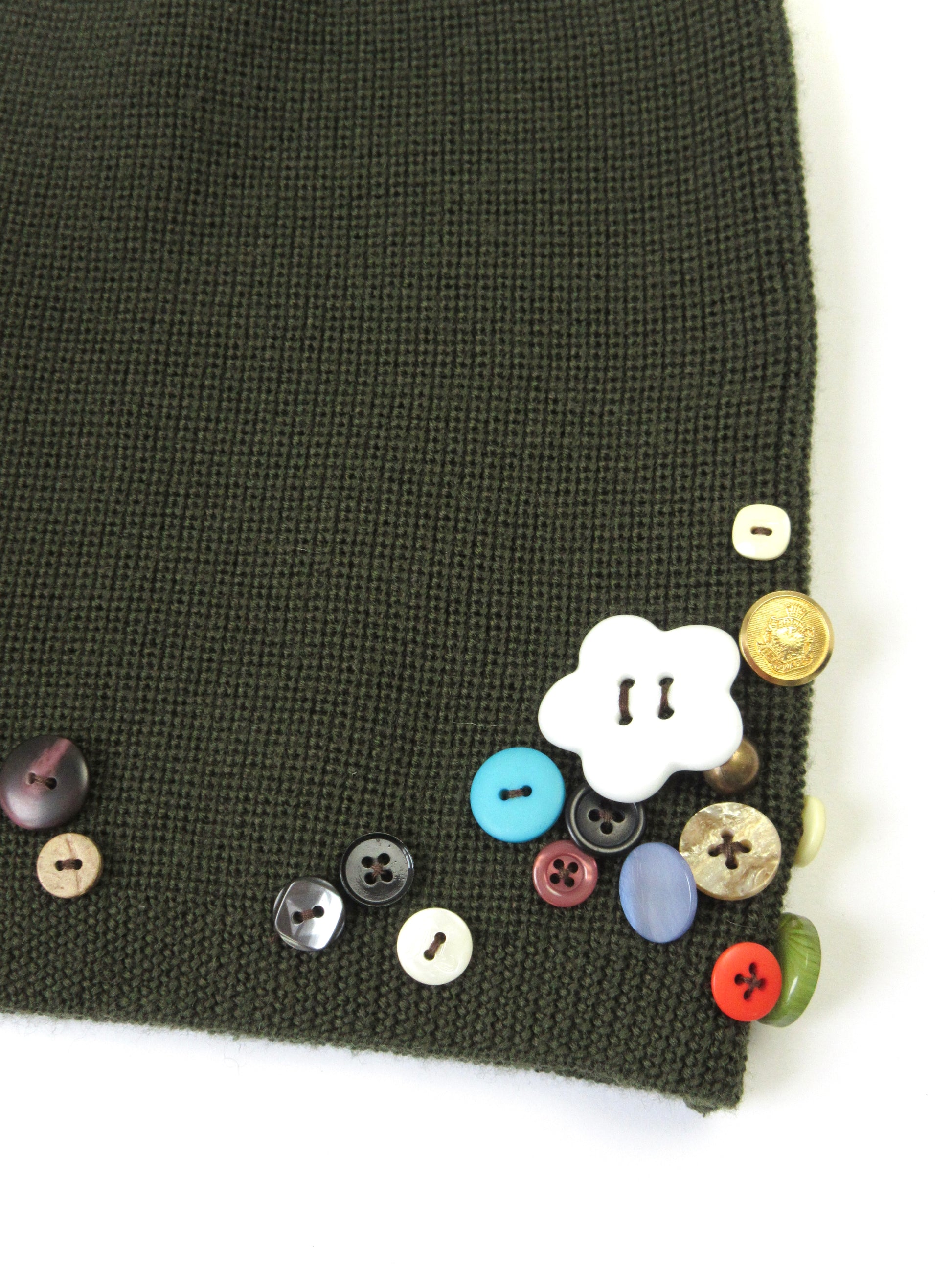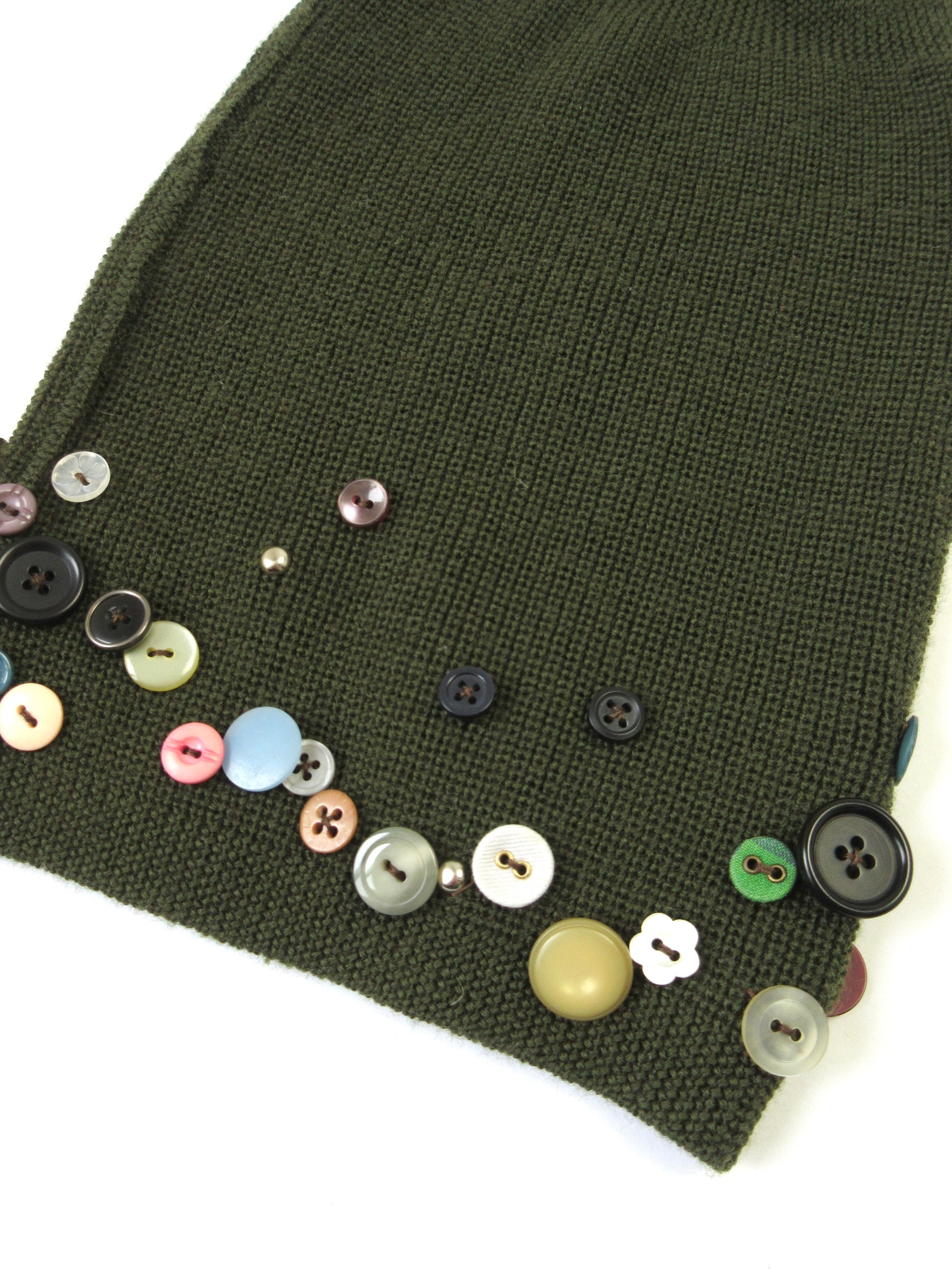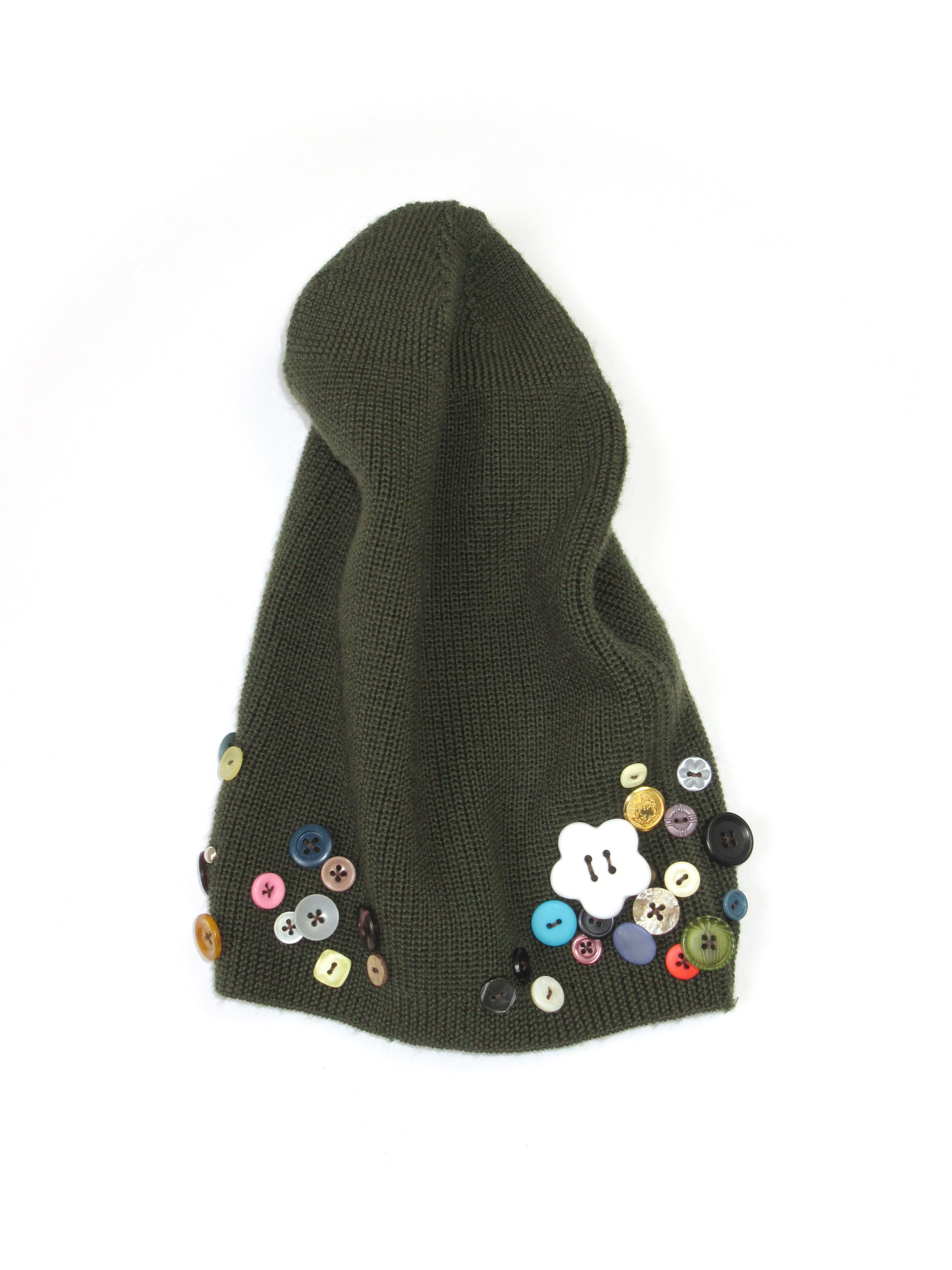 今の気分にピッタリなビーニー。恐らくwool,acrylic素材ですが、分厚すぎない生地の為春先までかぶって頂けるかと思います○ボタンで沢山のカラーを散りばめましたが、落ち着いたトーンを意識して選んだので意外にも様々なお洋服とコーディネートしやすいアイテムになったと自負しております...