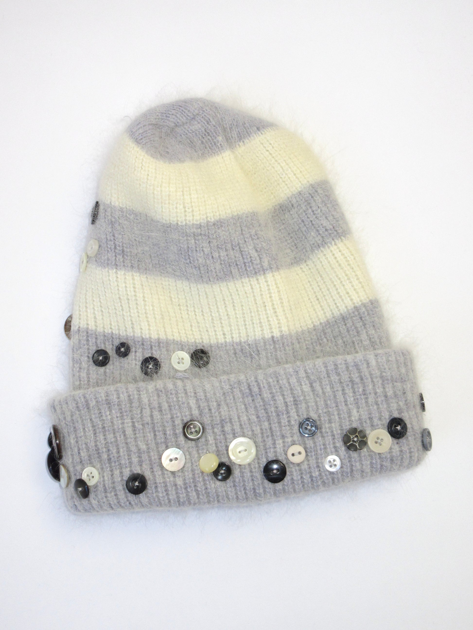 ふわふわのアンゴラ素材が愛らしいニットキャップ。やや小さめのサイズ感の為、あまり深く被らず着用写真のようにちょこっと乗せるように被るといい感じです◎