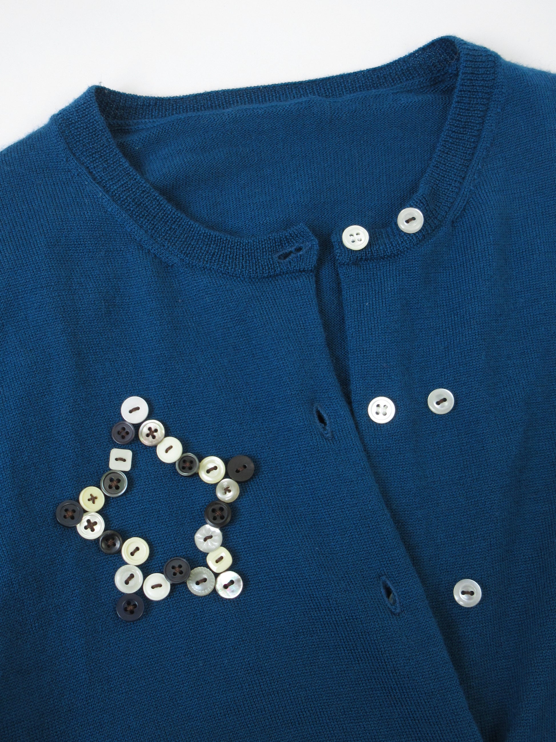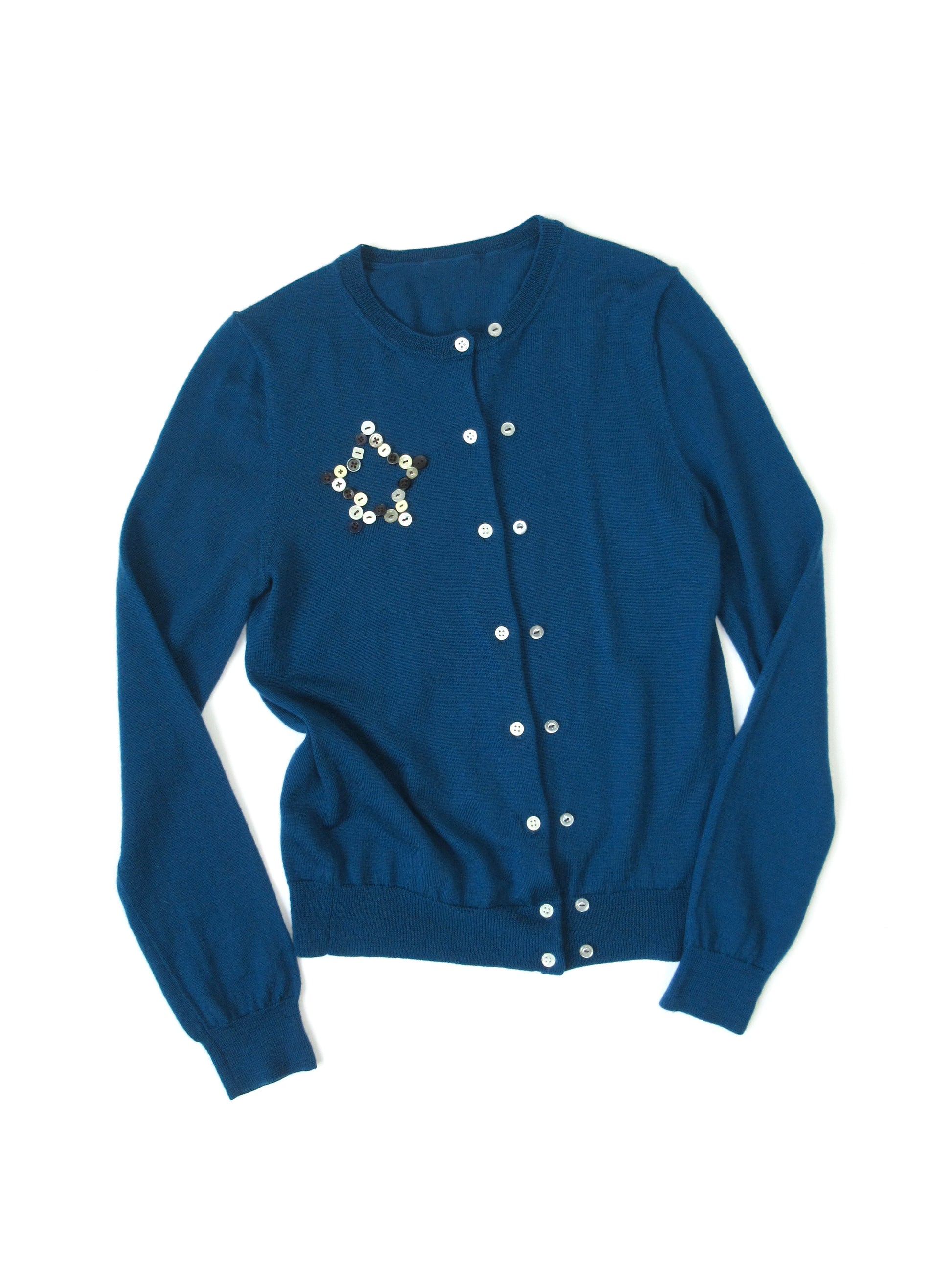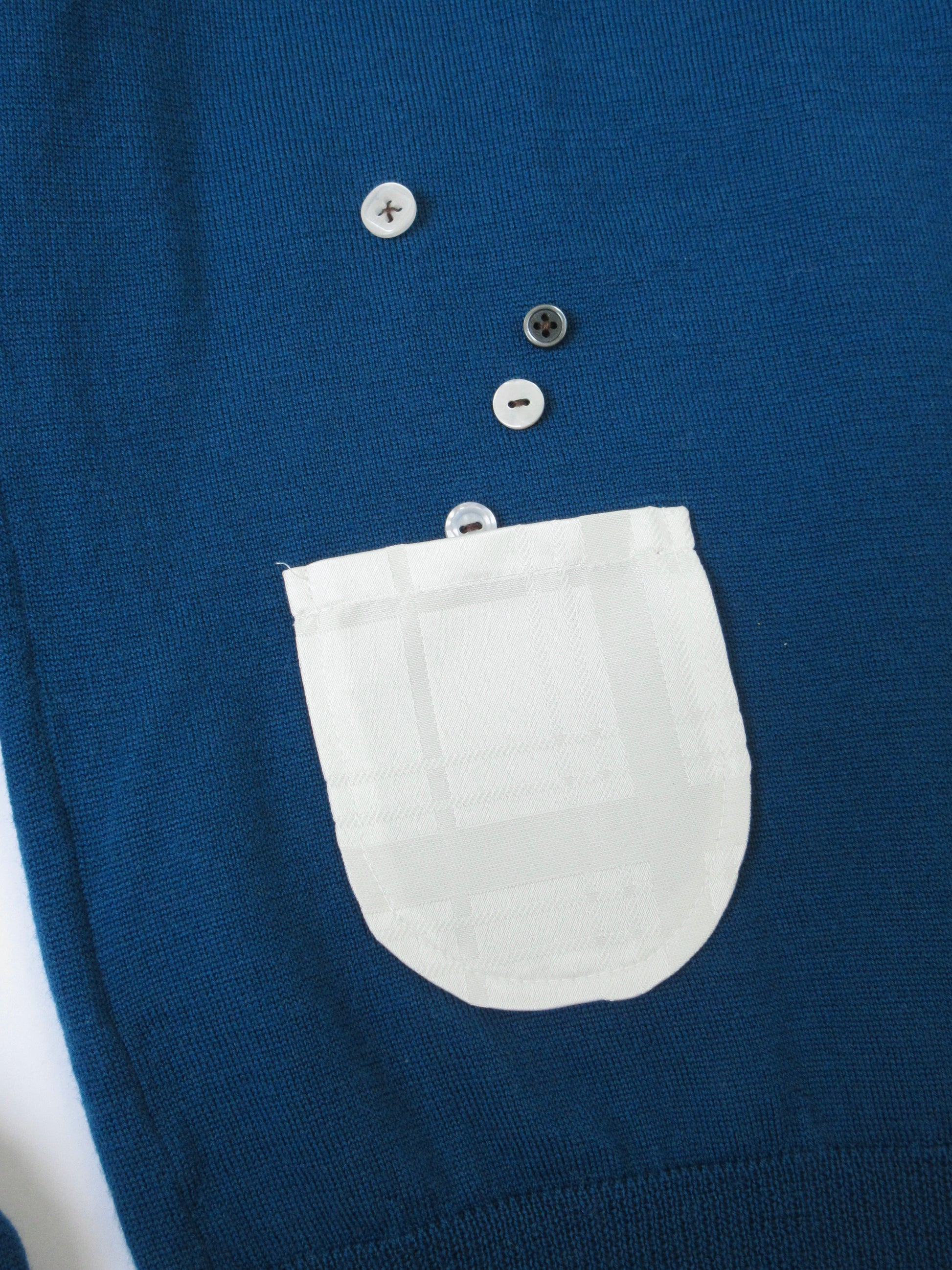 フロント横一列にボタンをプラスして普通とはちょっぴり違うカーディガンを目指しました。ユニフォームのような雰囲気もあり..バックにも遊び心を忘れずに..⭐︎