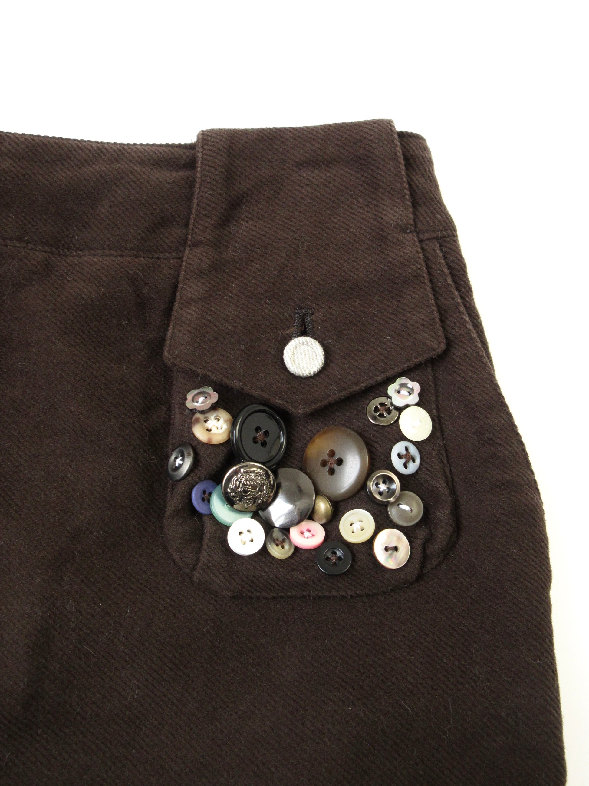 ポケットにボタンをあしらい、パッチポケットもプラス☑︎元のデザインにさらにユニークさを持たせた一着に仕上げました。
