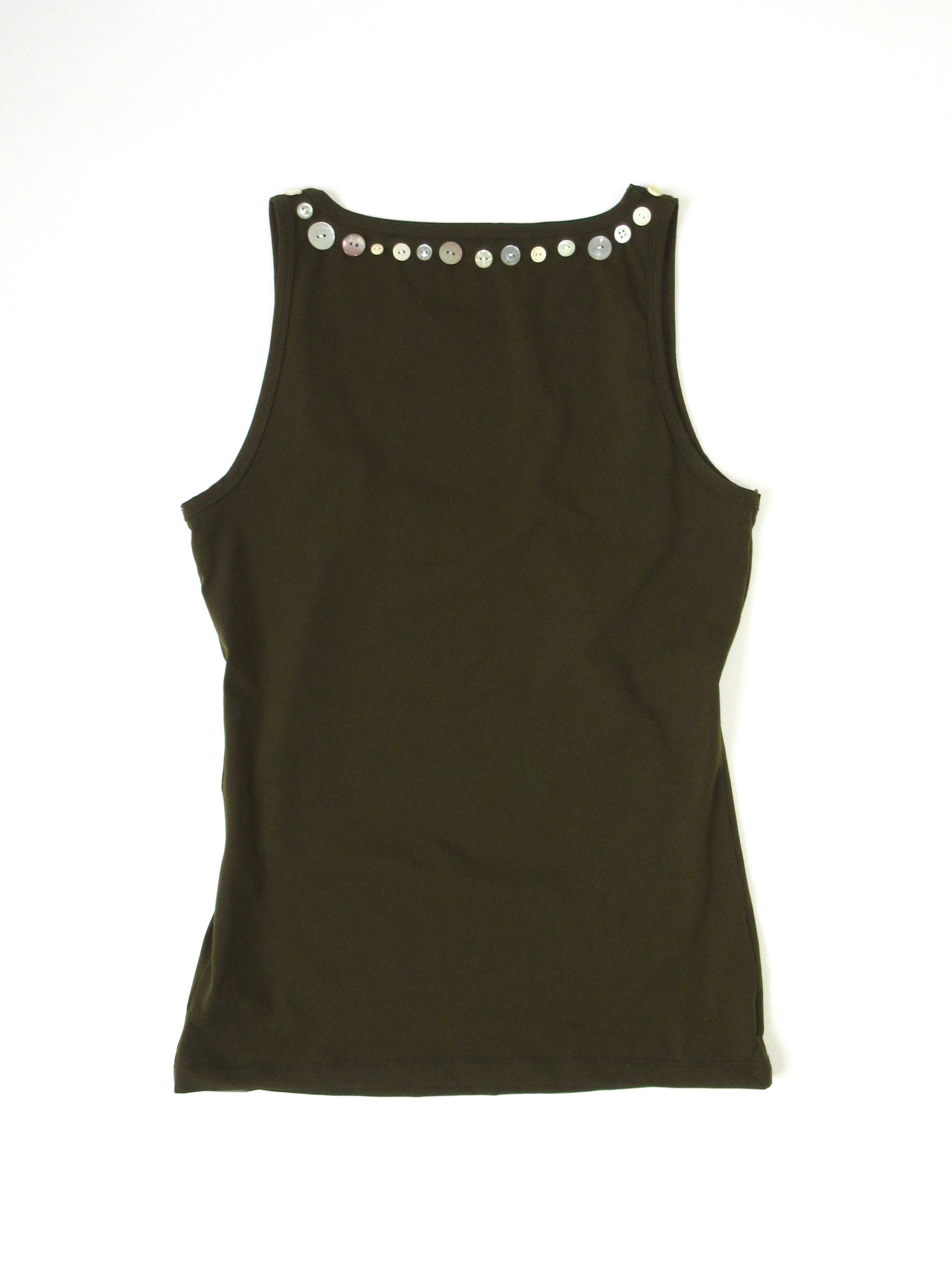 ネック部分一周に様々なボタンをあしらい、シンプルながら一癖ある1着に仕上げました。かなり伸縮性のある生地の為体型を問わず着用して頂けますし、これからの季節にはレイヤードで長く活躍しそうなアイテムです。