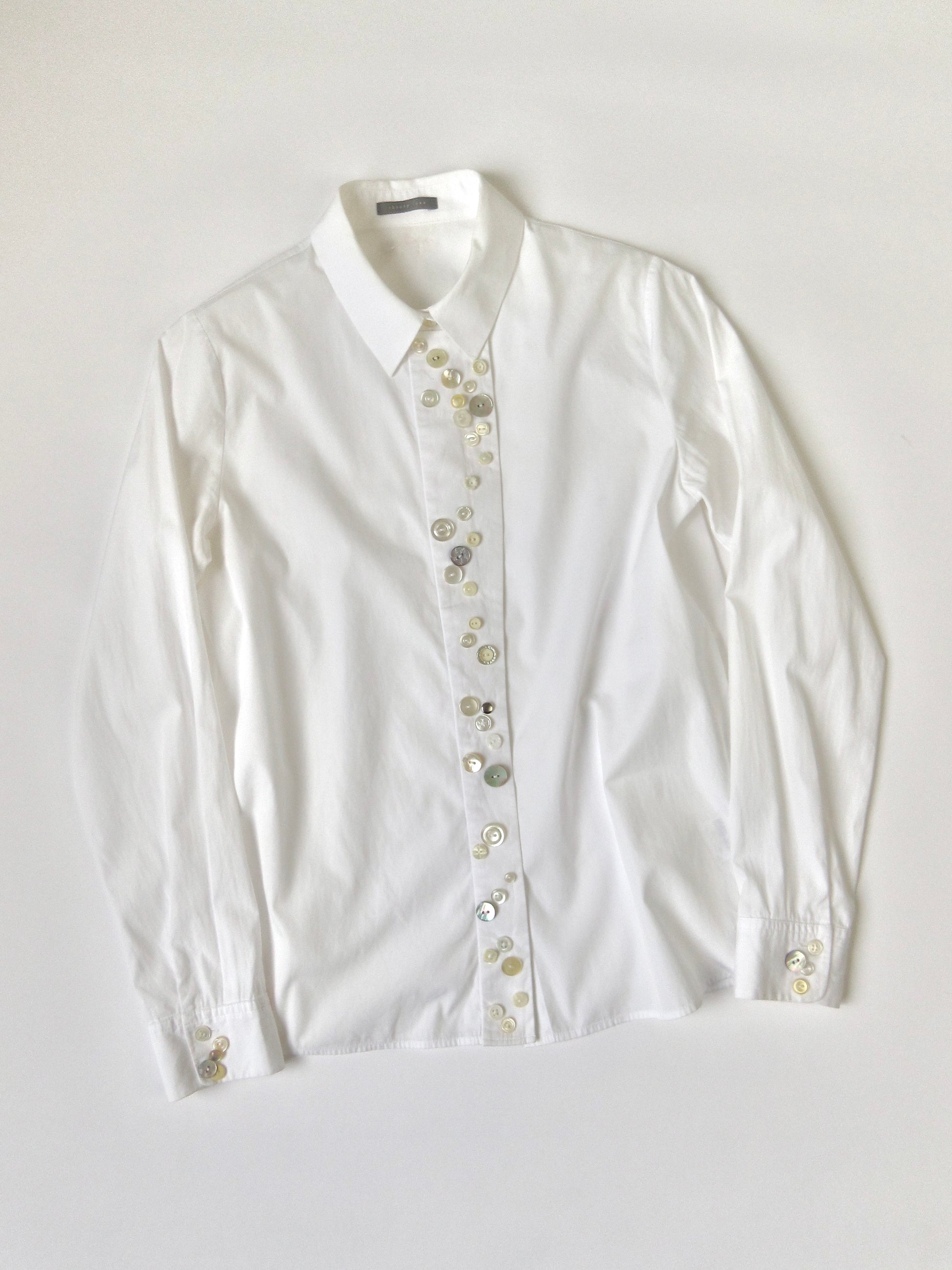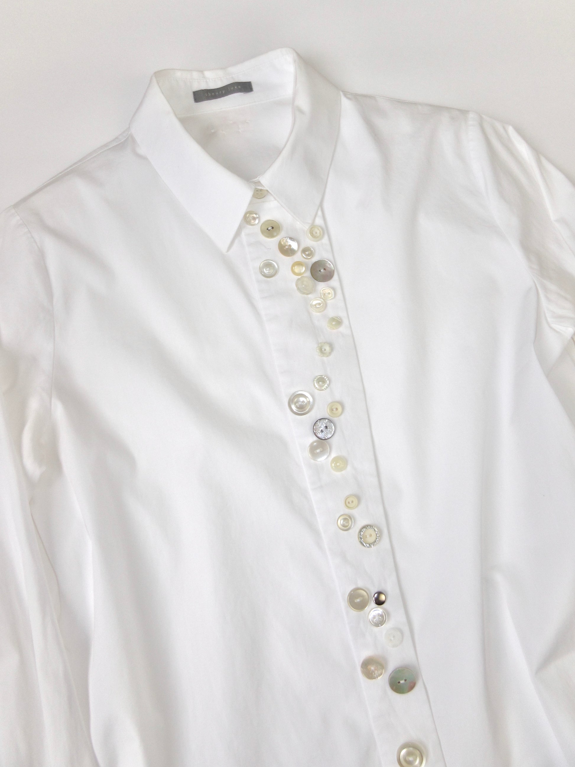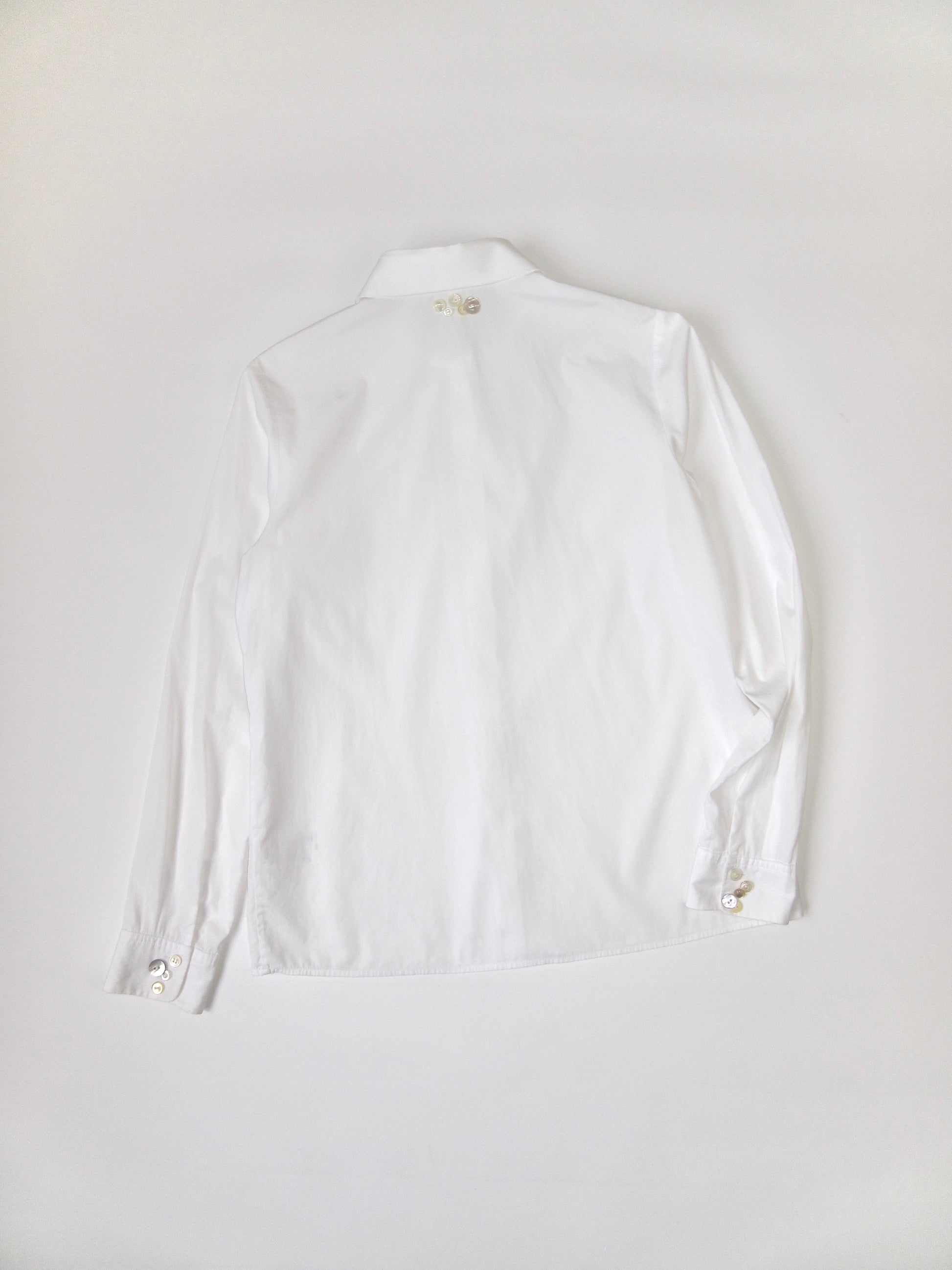 幅の広いフライフロントデザインのシャツにボタンを散りばめました。ピシッと一枚でボタンを際立たせても素敵ですし、羽織としても使え万能です◎ボタンを同系色でまとめることによって華美にならず、様々なアイテムとのコーディネートで活躍しそうな1着に仕上がりました。