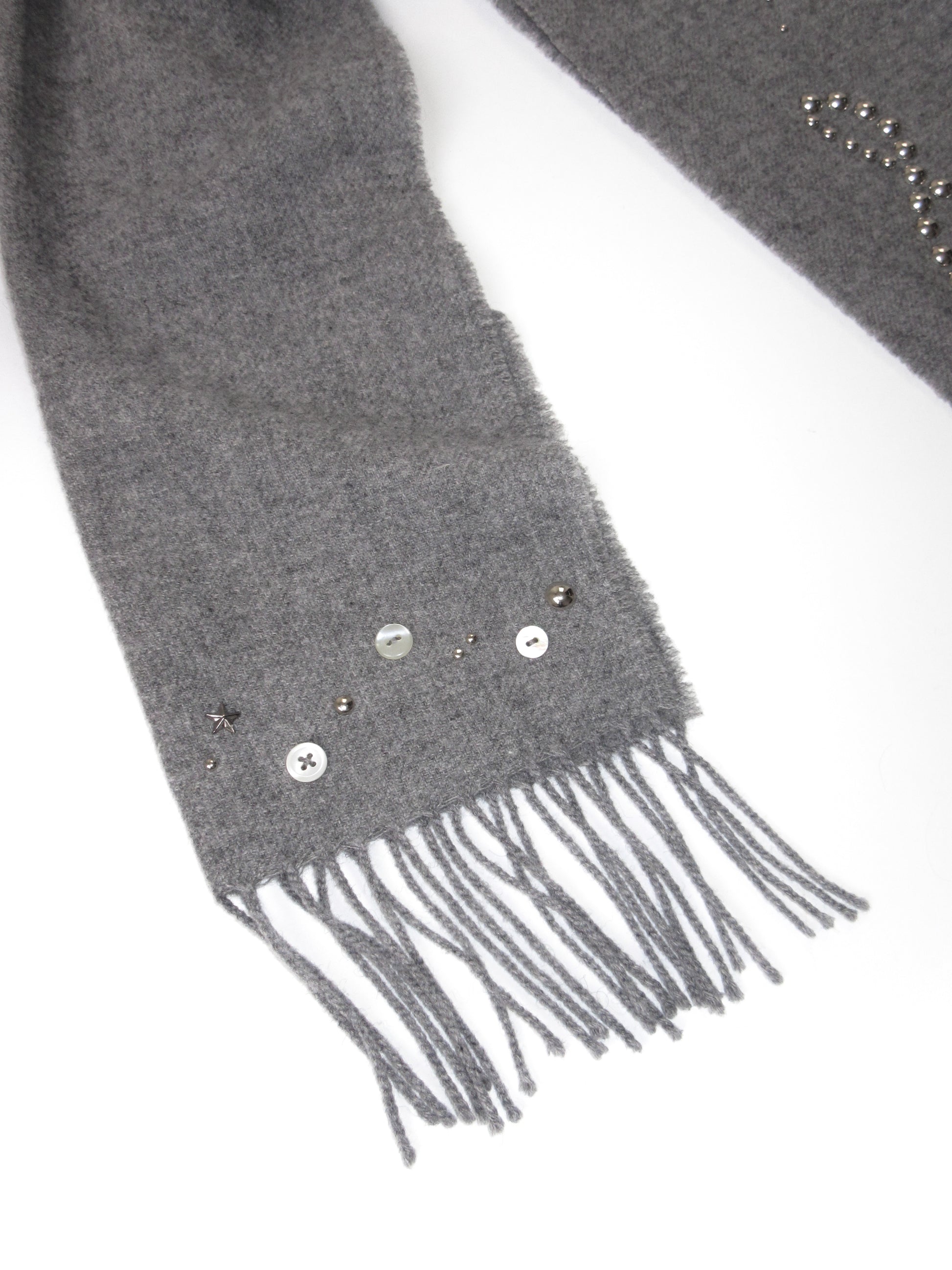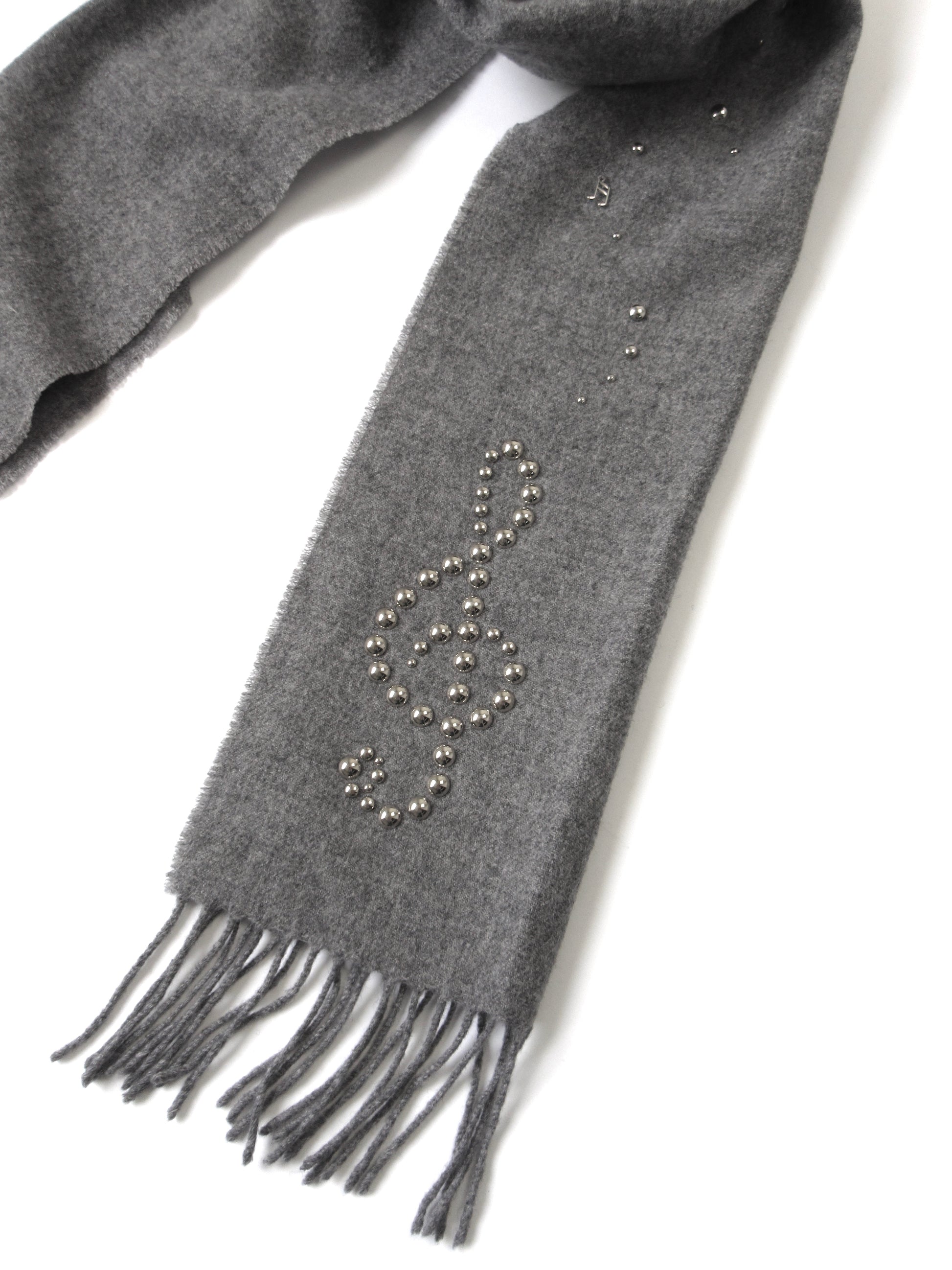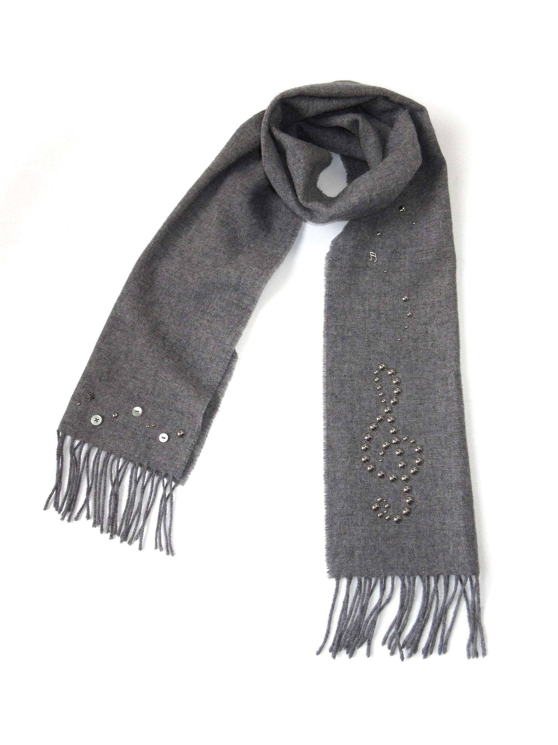 前回のMegumi mufflerよりもちょっぴり薄手で、カジュアルに普段使いしやすいイメージで仕上げました。星のスタッズや音符のチャームがポイント。