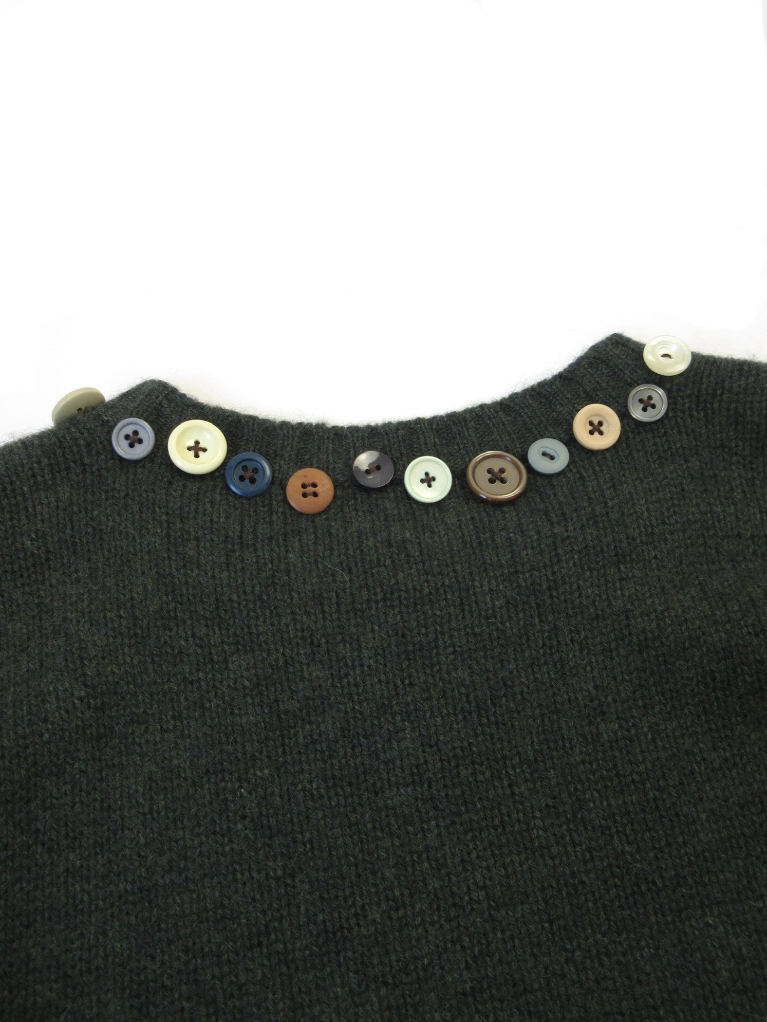 ふわふわのカシミヤニット(なんとcashmere100%!)を可愛らしくリメイクしました。ネックレスを付けずともこれを着るだけで華やかな印象に◎