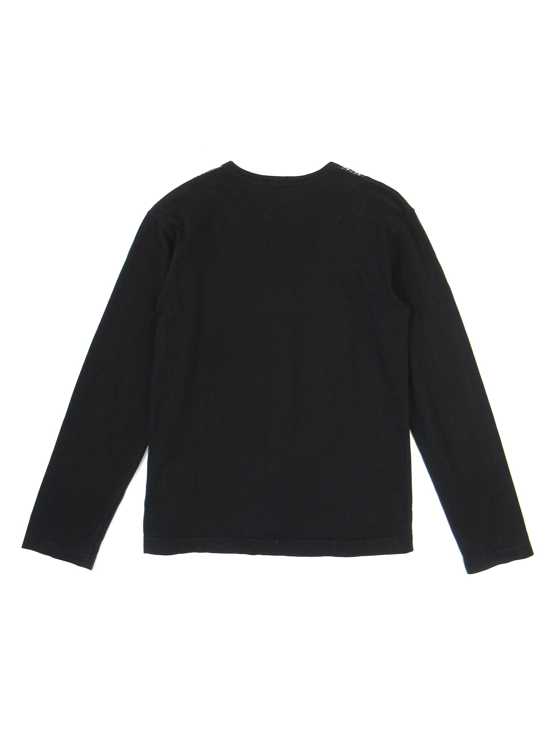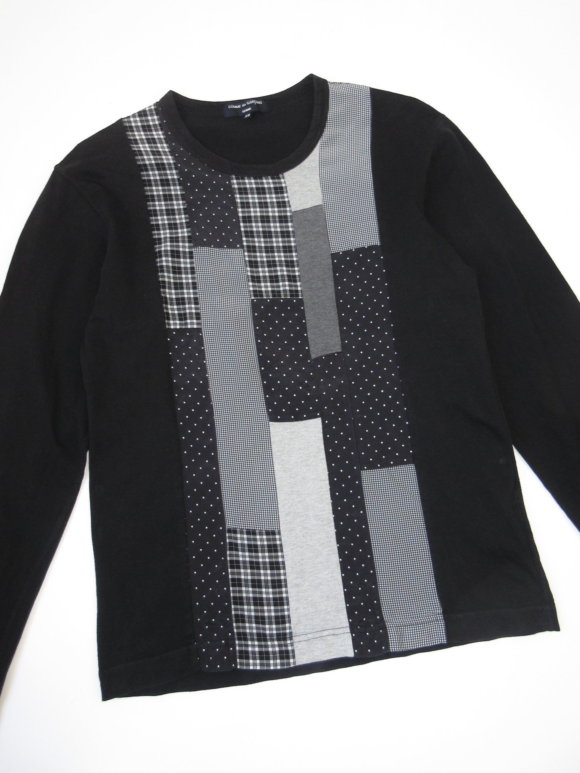 メンズサイズのXSですが、レディースが若干ゆとりを持って着用してもとっても可愛いロンT。モノトーンのパッチワークデザインが他には無い1着かと思います。若干の使用感がありますが、毛玉などもなく汚れやダメージのない良好なコンディションです。