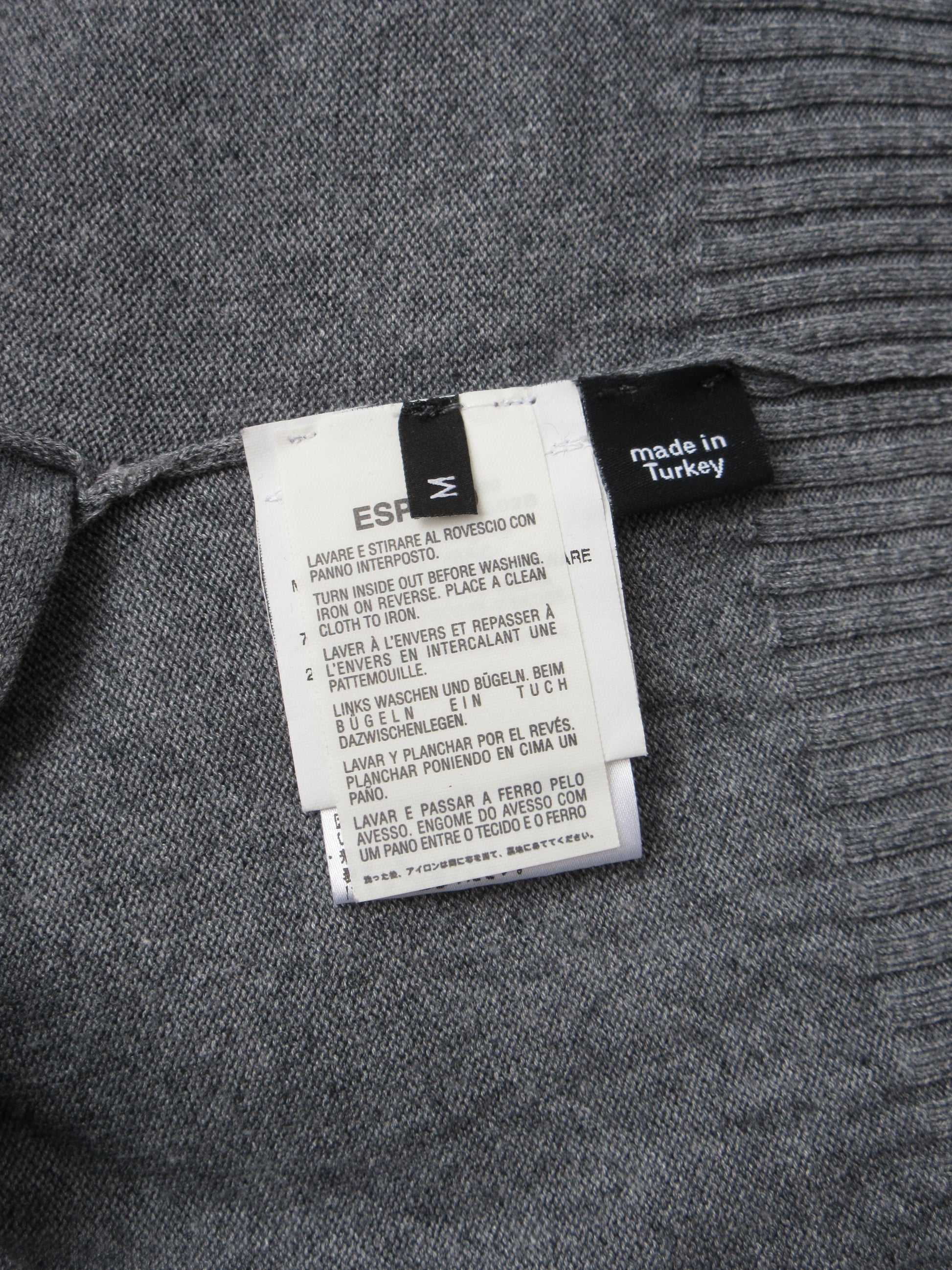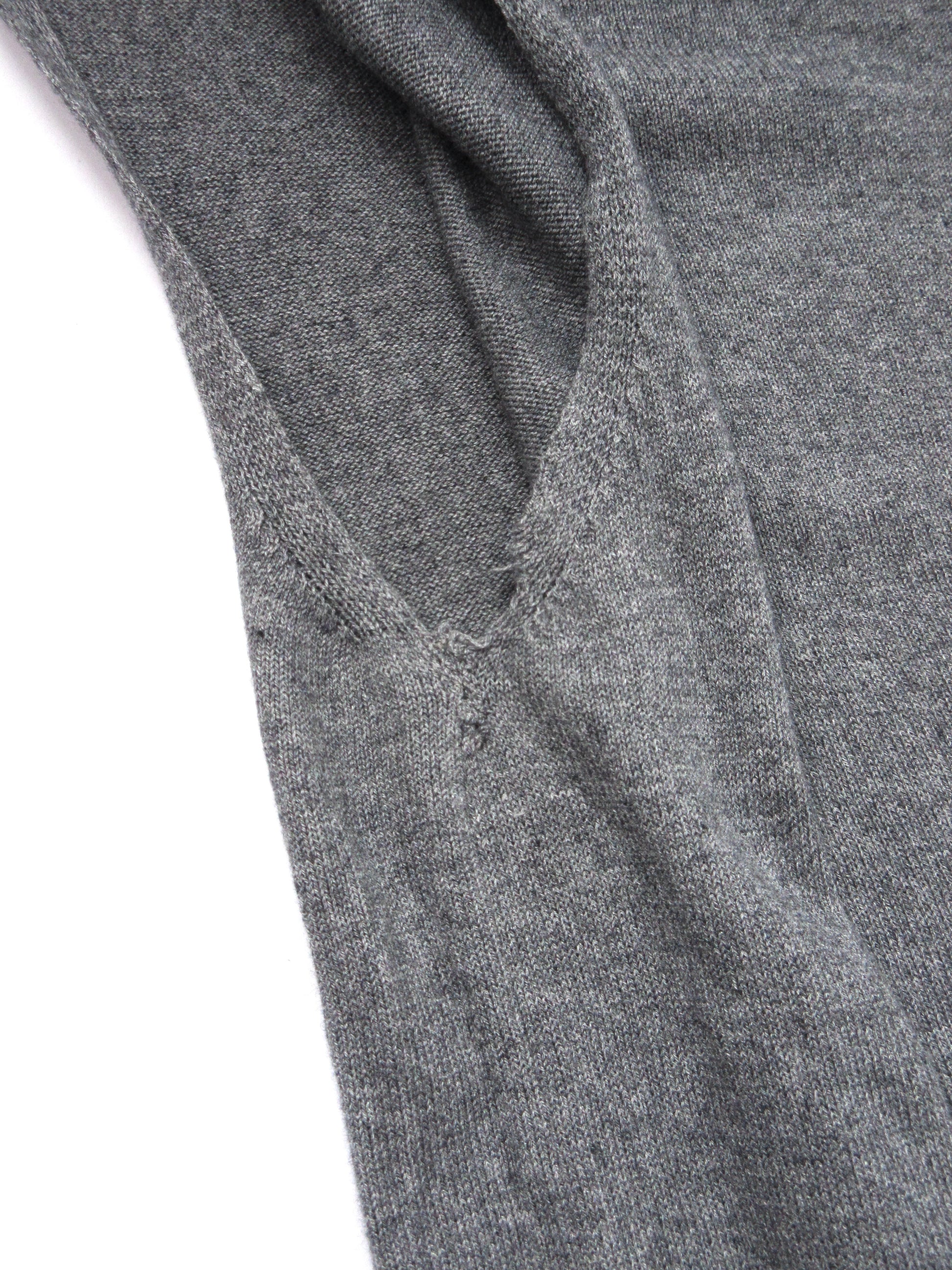 右の脇下に一部ほつれがあった為修繕しています。着用していて気になるものではございませんが、詳細写真(7枚目)をご確認ください。その他汚れやダメージのない比較的良好なコンディションです。秋が深まったらレイヤードでも活躍しそうな1着。