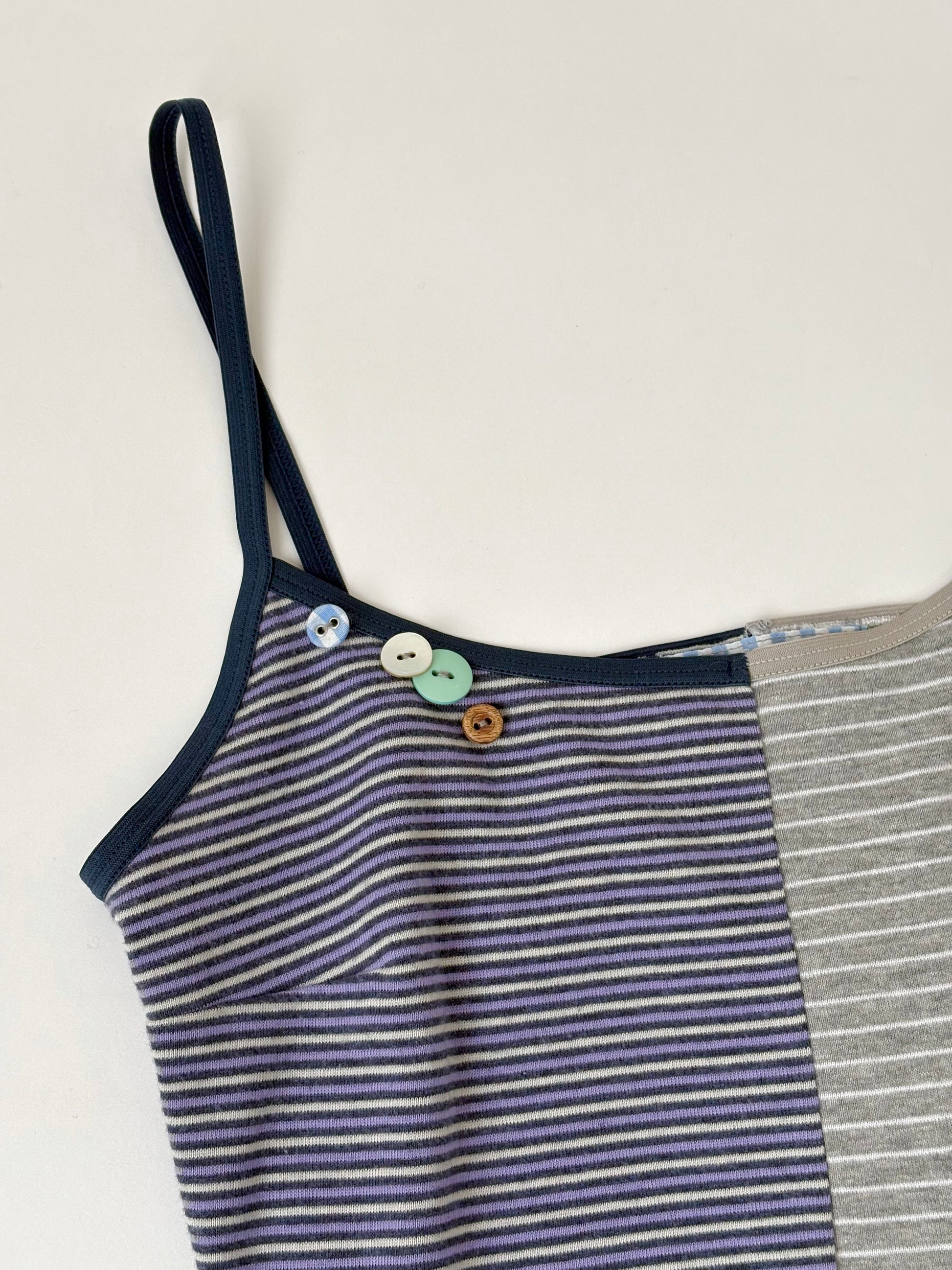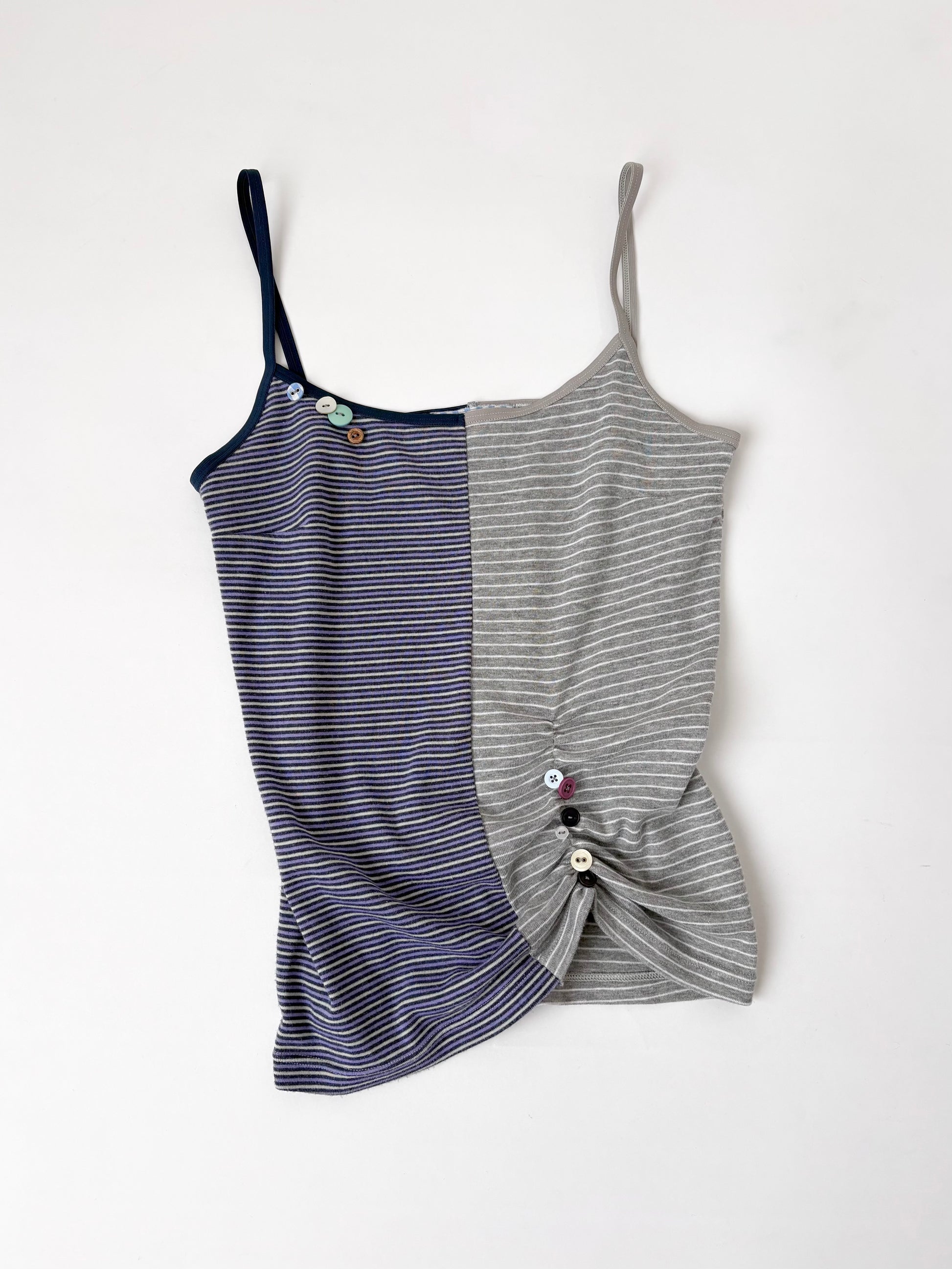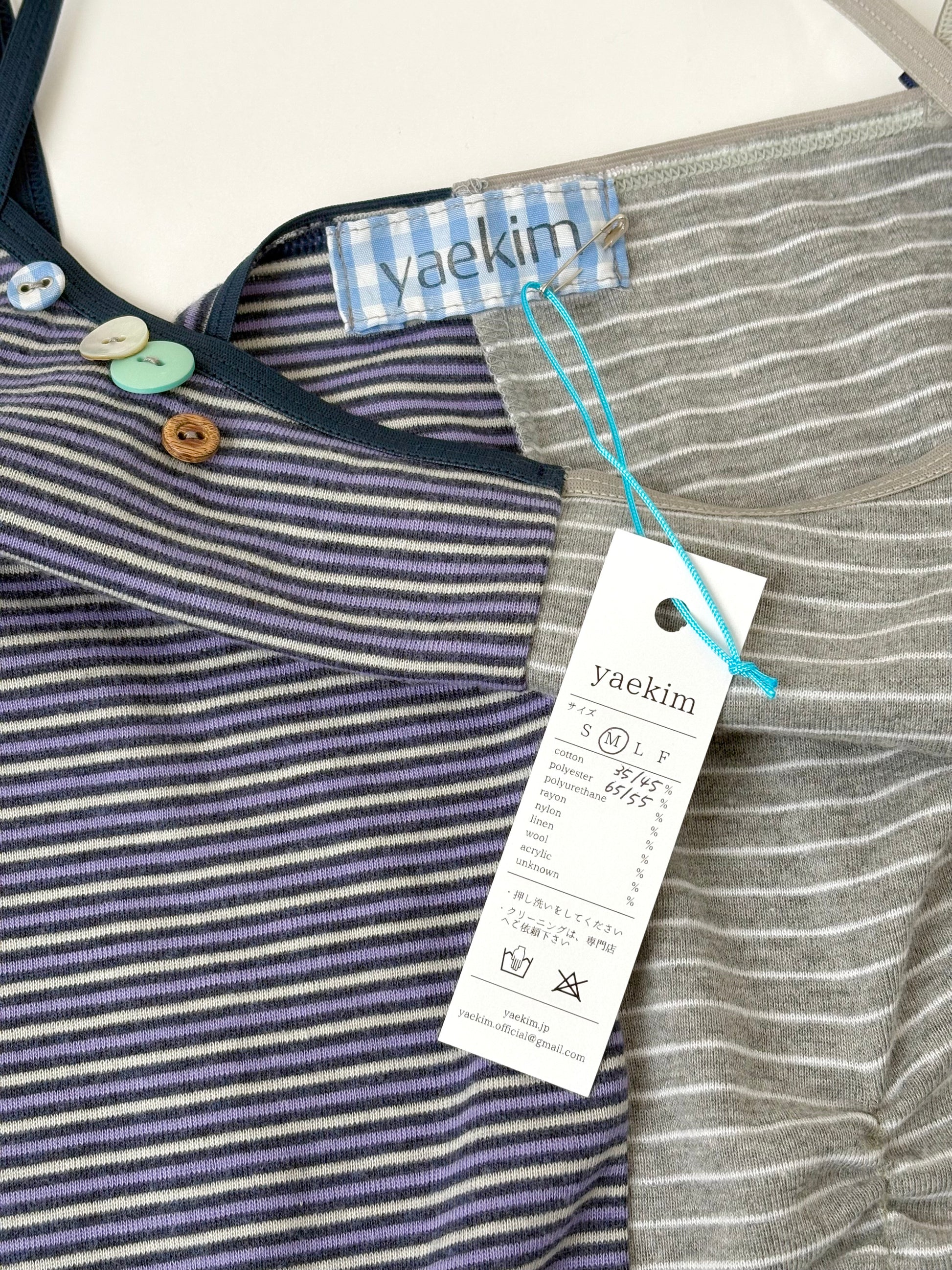 柄違いのキャミソールを2点仕入れることができたので、ドッキングしてアレンジもそれぞれに加えてみました。(ポケット付きのもう1点は4/11にupdate予定) 今の季節は着用写真のようにインナーとレイヤードして、夏はヘルシーに1枚でも◎ 長く着用して頂けるitemかと思います⟡.꙳