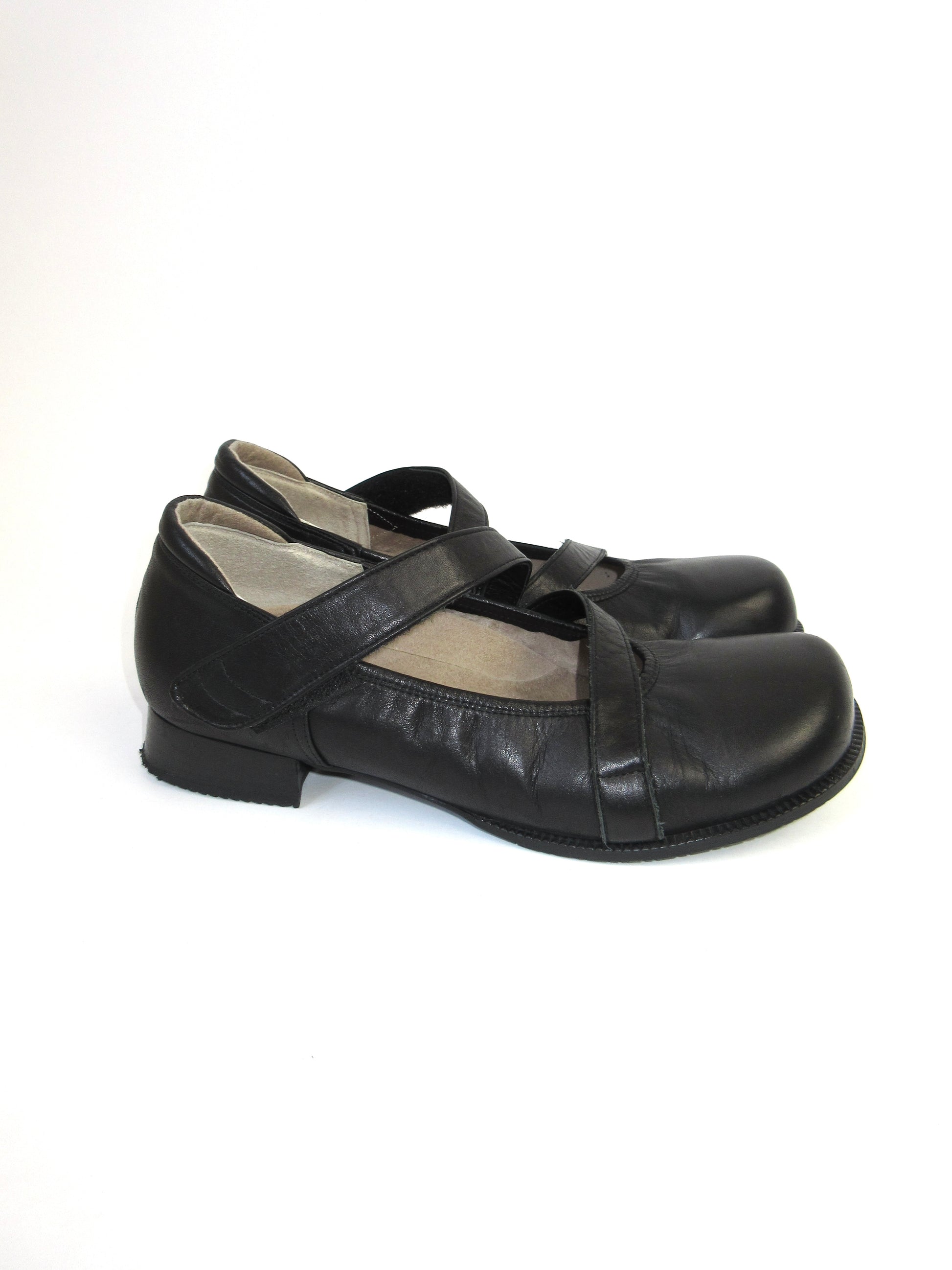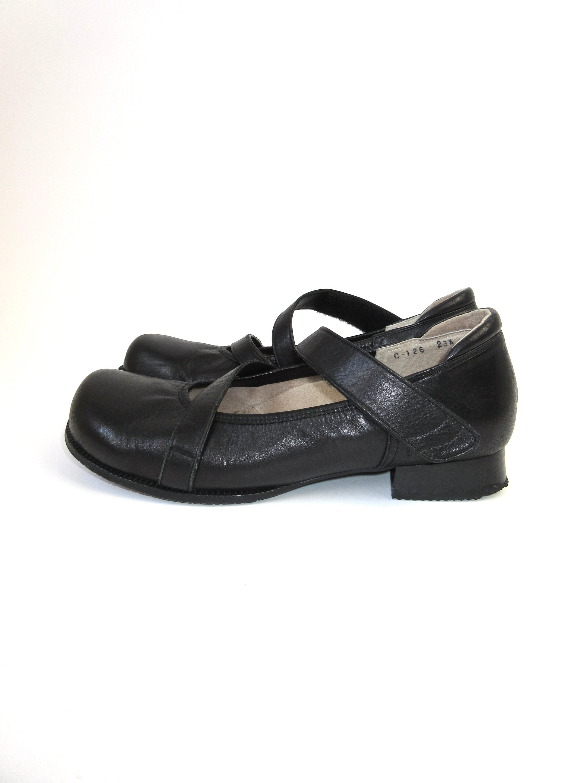 柔らかめな素材でストラップもあるので安定感があり、履き心地の良いデイリー使いにもぴったりなアイテム。少しボリュームのあるラウンドトゥに太めのストラップで、ややミスマッチな絶妙具合が可愛いのです。ソールの減りやレザーに多少のシワがあり、やや使用感があるコンディションです。