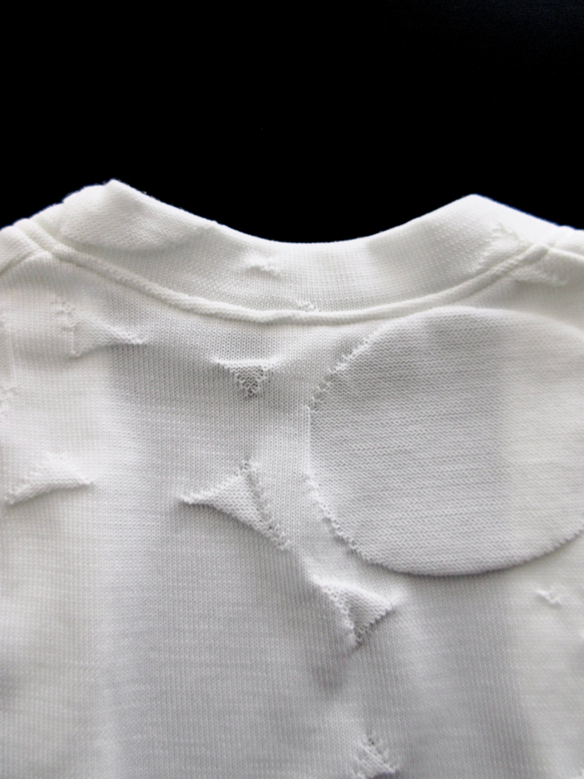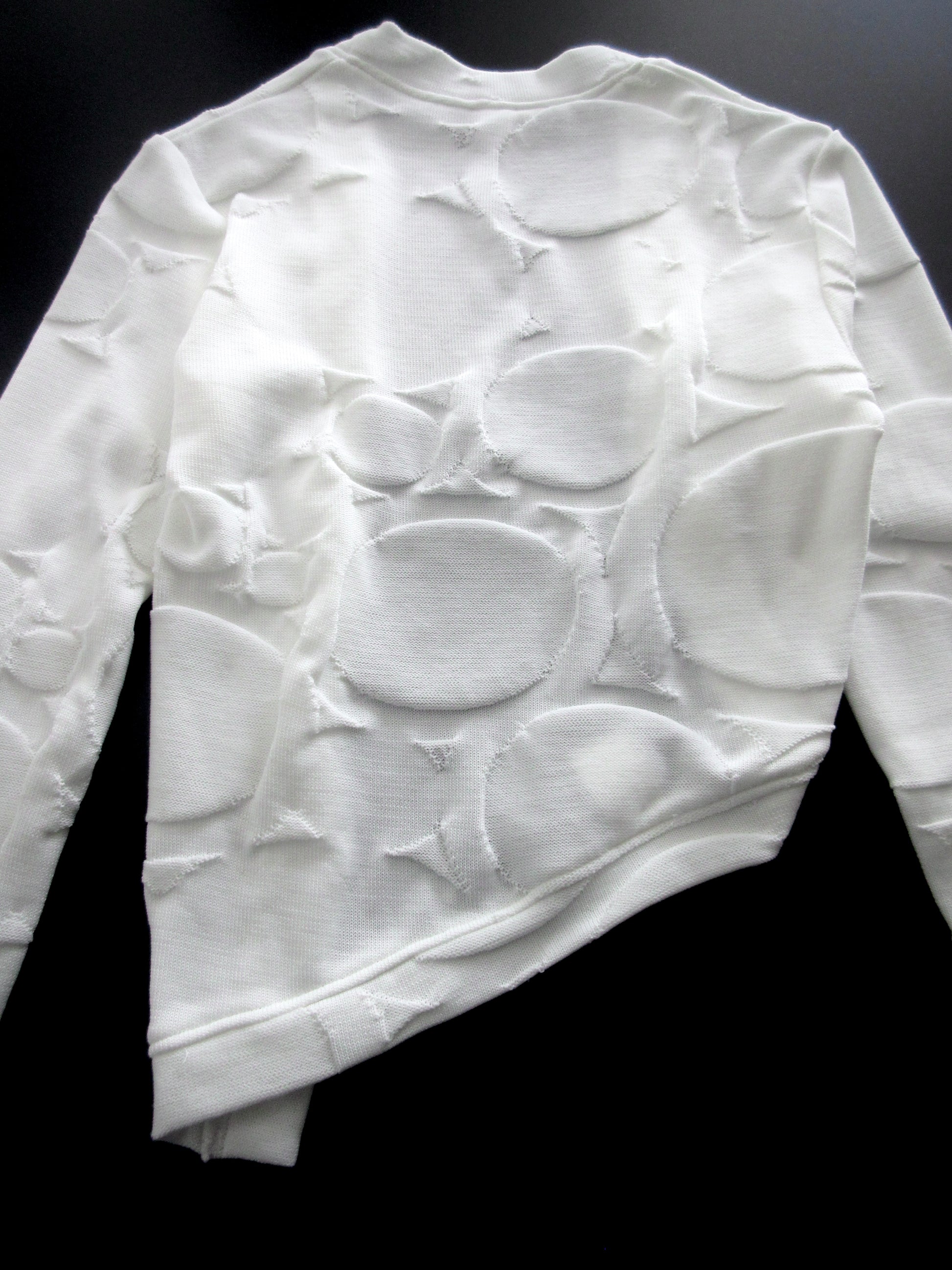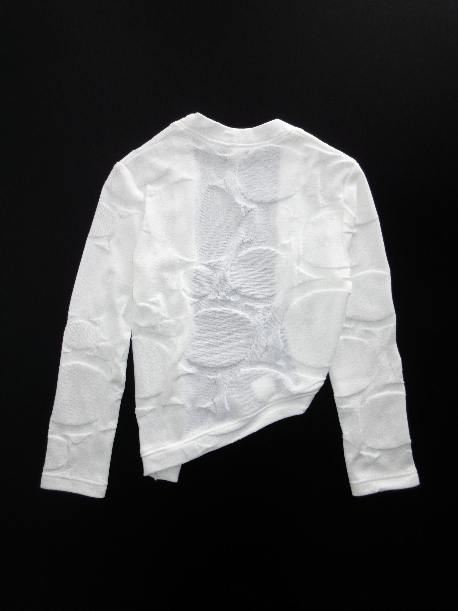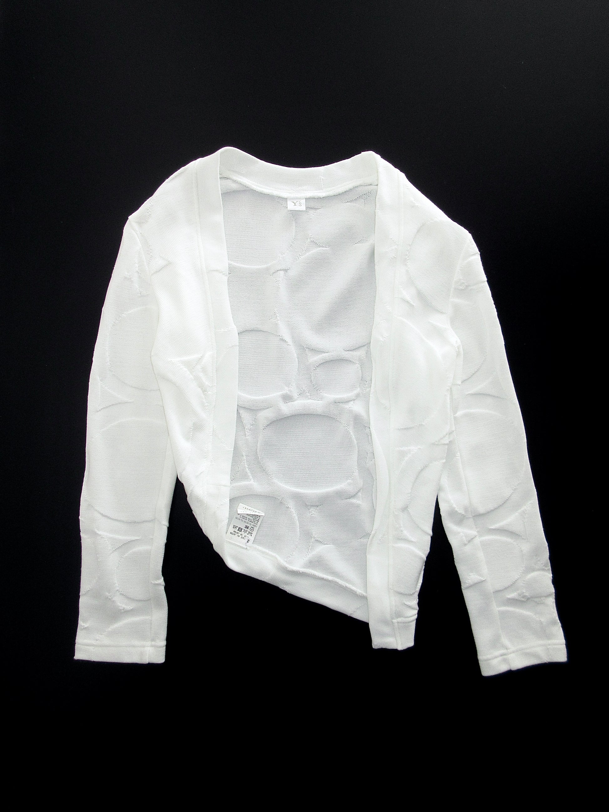 裾の長さがアンバランスになっている変形デザインのボレロカーディガン。一枚で唯一無二な雰囲気に。汚れやダメージのない良好なコンディションです。
